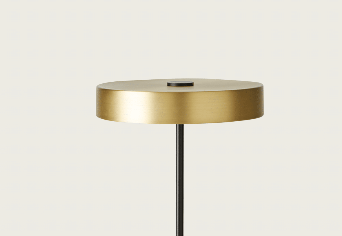 Ambor firmata da Pepe Fornas per Aromas del Campo รจ una lampada da tavolo con diffusore e base in vetro acrilico disponibile in due colori (ottone opaco o nero opaco), e struttura in acciaio nero.