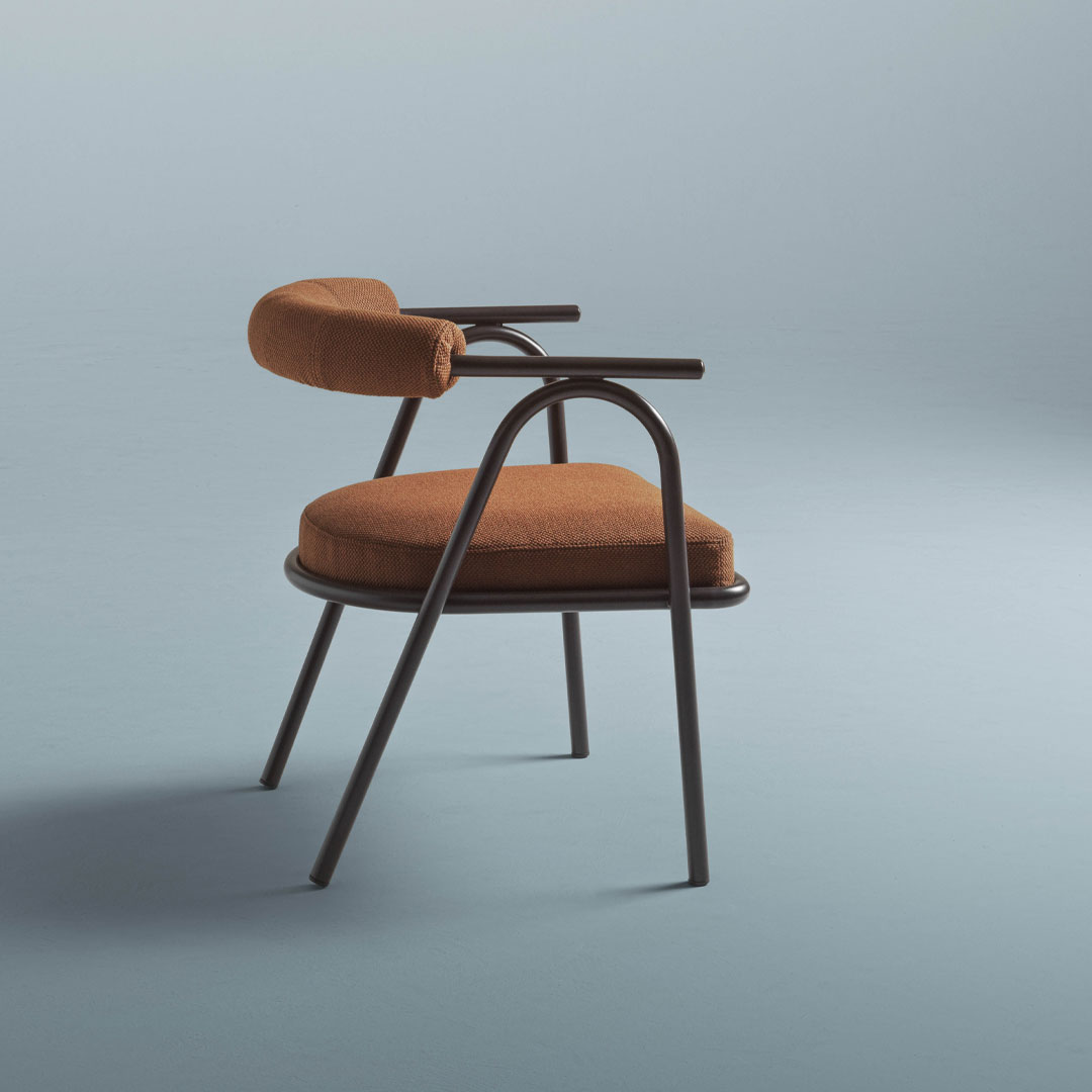 La linea della poltroncina Baba di Serena Confalonieri, protagonista di un divertente gioco di cromie e contrasti.