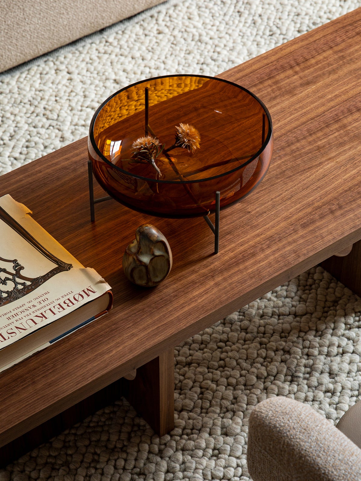 La ciotola Échasse — Disponibile in due dimensioni in vetro fumé e ottone spazzolato, offre una versione moderna e degna di un centrotavola della tradizionale ciotola da portata. Semplice e mirato, questo è un contenitore da banco e da tavolo che è sia moderno che elegante.