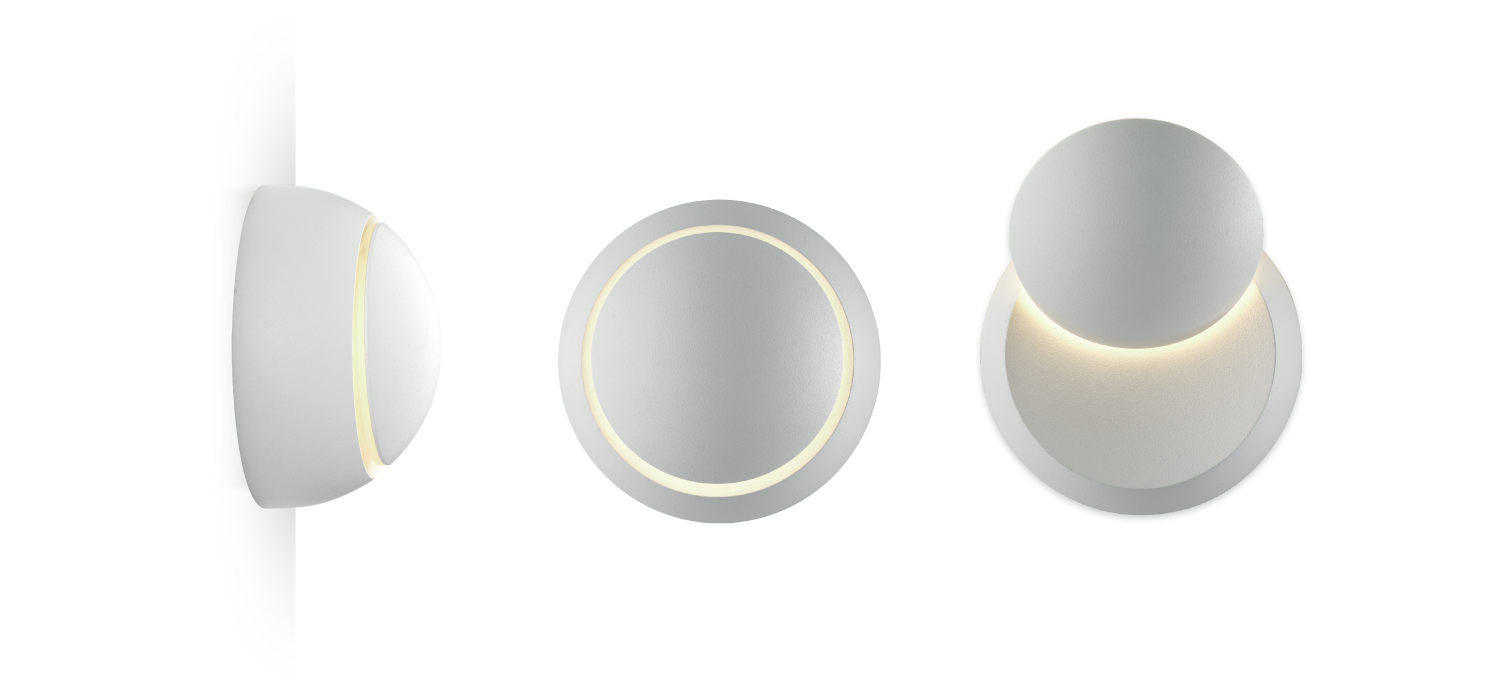 Lampada da parete per uso da interno ed esterno, corpo in alluminio verniciato in bianco opaco e schermo in materiale plastico. Sorgente luminosa led ad alta efficienza da 4W, tonalitร calda. L’apparecchio รจ dotato di schermo mobile per creare effetti luminosi limitando o aprendo il flusso luminoso. Classe di protezione IP54. LED 4W 220-240V 3000K